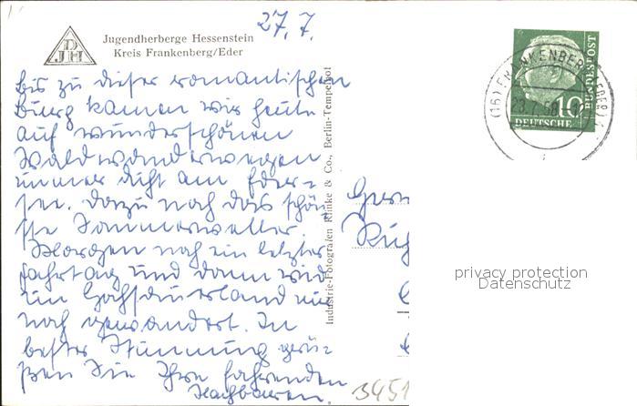 31706024 alte Postkarte Frankenberg Eder Jugendherberge Hessens Fliegeraufnahme postalisch gelaufen Erhaltung siehe scans KatCode: 11110006635011