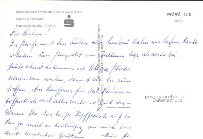 72434692 Frankenberg Eder Kreissparkasse postalisch nicht gelaufen Erhaltung siehe scans KatCode: 11110006635011