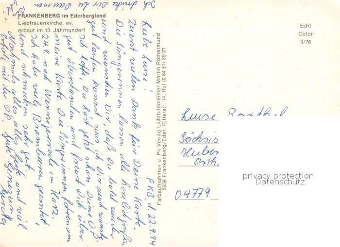 72981558 Frankenberg Eder Liebfrauenkirche postalisch nicht gelaufen Erhaltung siehe scans [LiesaD40] KatCode: 11110006635011