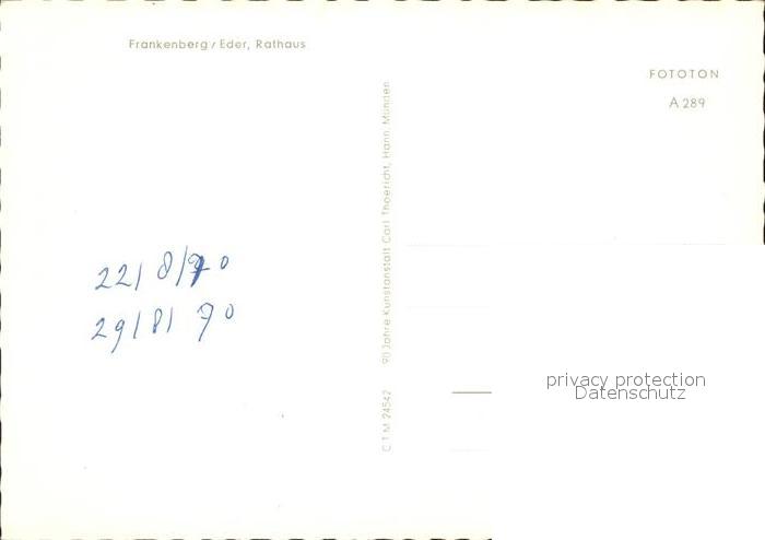 72063952 Frankenberg Eder Rathaus postalisch nicht gelaufen KatCode: 11110006635011