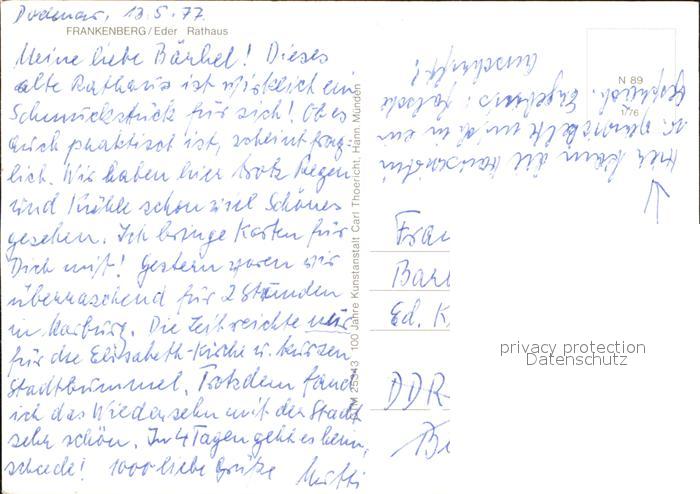 72596520 Frankenberg Eder Rathaus Fachwerkhaus Erker postalisch nicht gelaufen Erhaltung siehe scans [FriedD77] KatCode: 11110006635011
