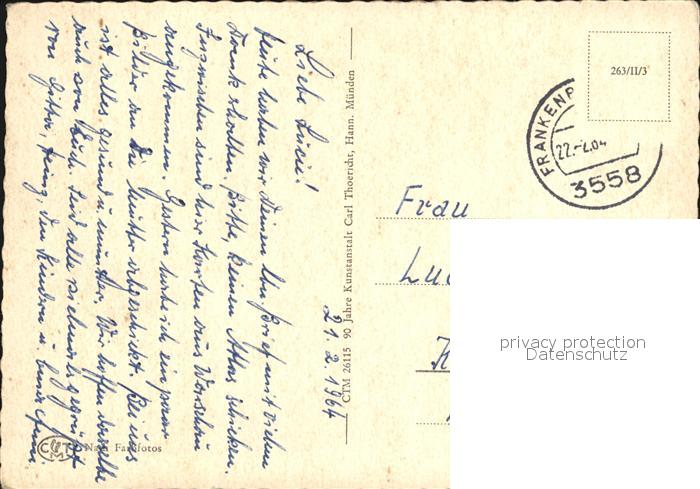 72456295 alte Postkarte Frankenberg Eder Rathaus Kulturhalle Obermarkt Blick auf Stadt postalisch gelaufen Erhaltung siehe scans KatCode: 11110006635011