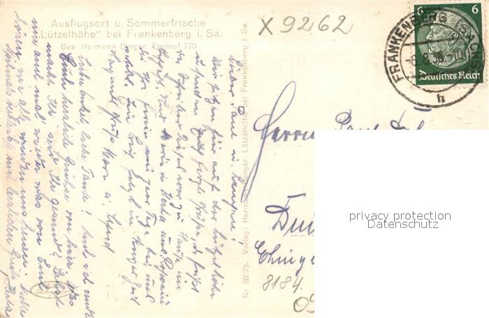 43329655 alte Postkarte Frankenberg Sachsen Ausflugsort Luetzelhoehe Gaststaette Restaurant Terrasse postalisch gelaufen Erhaltung siehe scans [FriedD77] KatCode: 11110014182120