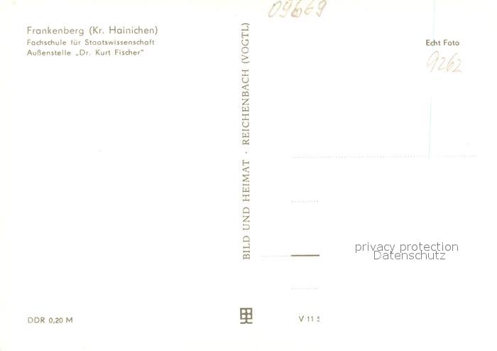 73565447 Frankenberg Sachsen Fachschule fuer Staatswissenschaft Aussenstelle Dr Kurt Fischer postalisch nicht gelaufen Erhaltung siehe scans [FriedD77] KatCode: 11110014182120