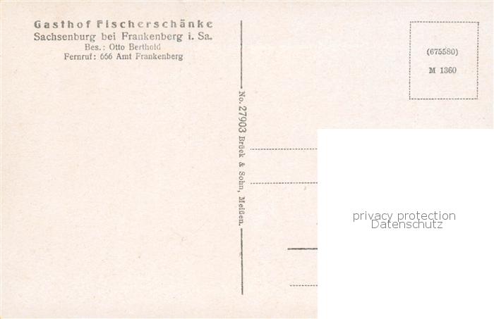73801573 Frankenberg Sachsen Gasthof Fischerschaenke Sachsenburg postalisch nicht gelaufen Erhaltung siehe scans [WerneD78] KatCode: 11110014182120