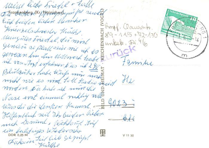 73888523 alte Postkarte Frankenberg Sachsen Gondelteich Panorama Luetzelhoehe Humboldtstrasse postalisch gelaufen Erhaltung siehe scans [WerneD78] KatCode: 11110014182120