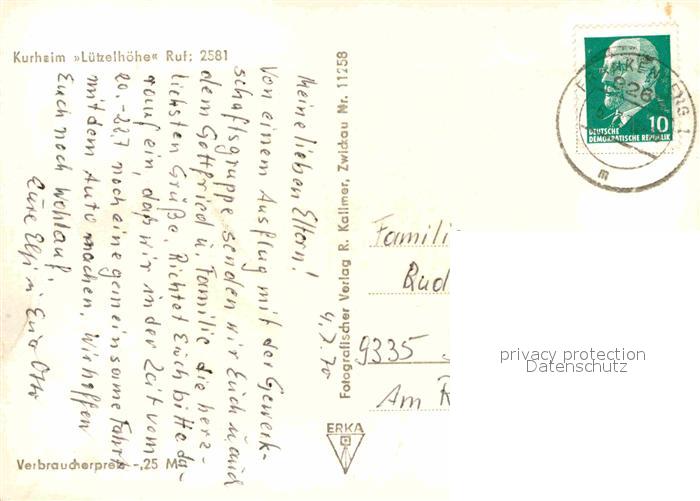 72681568 alte Postkarte Frankenberg Sachsen Kurheim Luetzelhoehe postalisch gelaufen Erhaltung siehe scans [LiesaD40] KatCode: 11110014182120