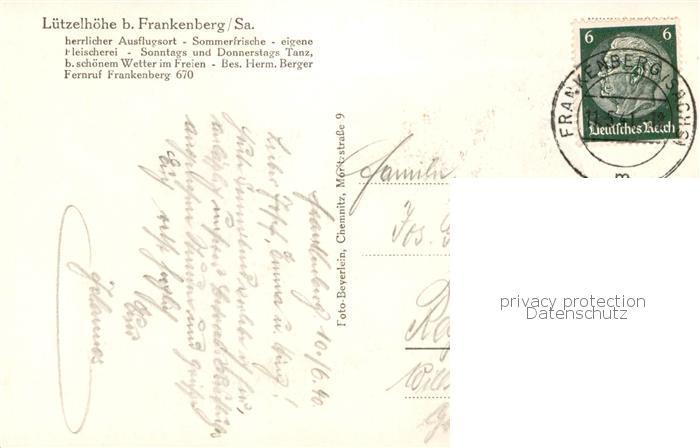 73801646 alte Postkarte Frankenberg Sachsen Luetzelhoehe Gartenterrasse Teilansichten postalisch gelaufen Erhaltung siehe scans [WerneD78] KatCode: 11110014182120