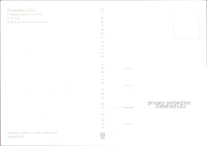 72523930 Frankenberg Sachsen Neubaugebiet Luetzelhoehle Park Platz der Einheit postalisch nicht gelaufen Erhaltung siehe scans KatCode: 11110014182120