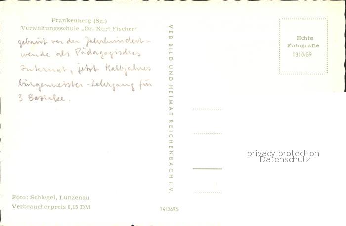 72005765 Frankenberg Sachsen Verwaltungsschule Dr. Kurt Fischer postalisch nicht gelaufen Erhaltung siehe scans KatCode: 11110014182120
