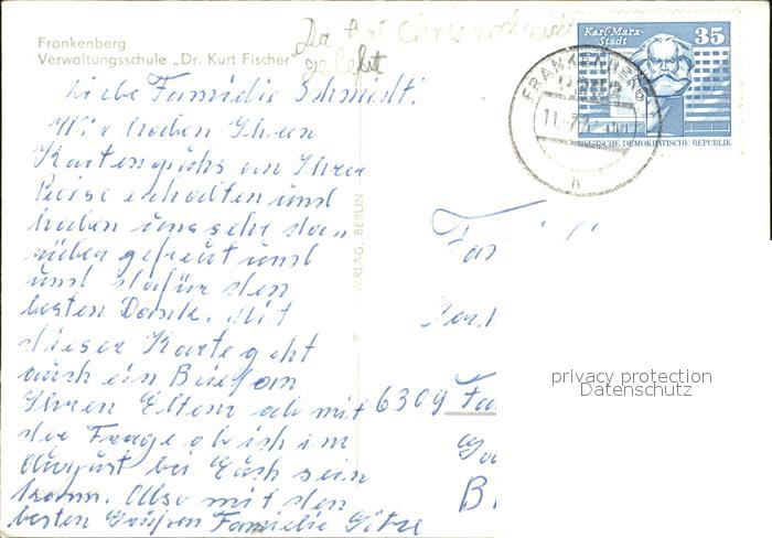 72460810 alte Postkarte Frankenberg Sachsen Verwaltungsschule Dr Kurt Fischer postalisch gelaufen Erhaltung siehe scans KatCode: 11110014182120