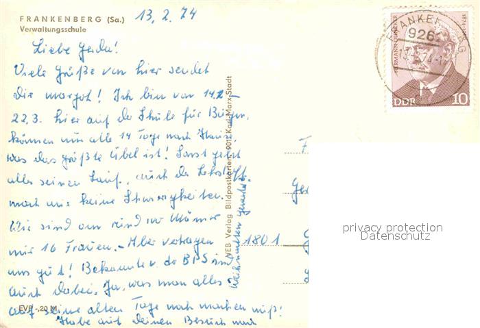 72727189 alte Postkarte Frankenberg Sachsen Verwaltungsschule postalisch gelaufen Erhaltung siehe scans [FriedD77] KatCode: 11110014182120