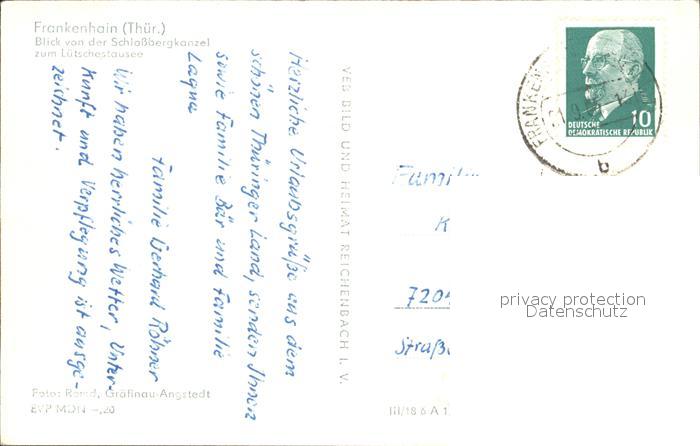 72327268 alte Postkarte Frankenhain Thueringen Blick von der Schlossbergkanzel zum Luetschestausee postalisch gelaufen Erhaltung siehe scans KatCode: 11110016070014