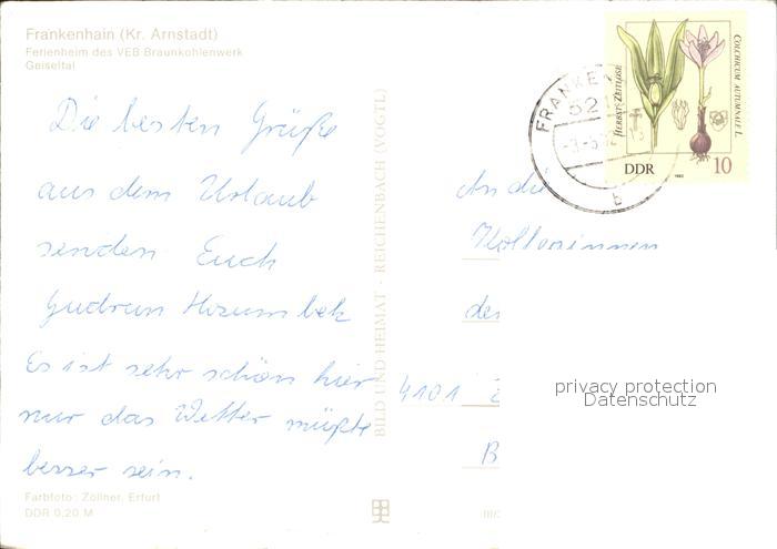 72257736 alte Postkarte Frankenhain Thueringen Ferienheim des VEB Braunkohlenwerk Geiseltal postalisch gelaufen Erhaltung siehe scans KatCode: 11110016070014