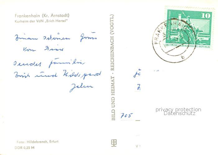 73760052 alte Postkarte Frankenhain Thueringen Kurheim der VdN Erich Hertel postalisch gelaufen Erhaltung siehe scans [WerneD78] KatCode: 11110016070014
