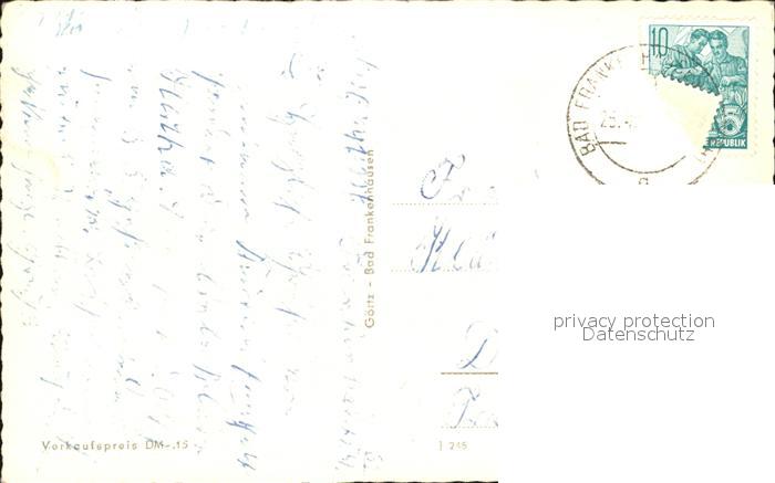 72397196 alte Postkarte Frankenhausen Bad am Weinberg postalisch gelaufen Erhaltung siehe scans KatCode: 11110016065003