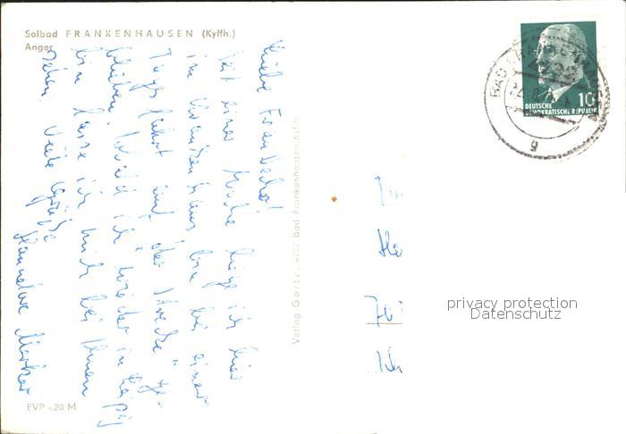 72331287 alte Postkarte Frankenhausen Bad Anger Thueringer Hof postalisch gelaufen Erhaltung siehe scans KatCode: 11110016065003