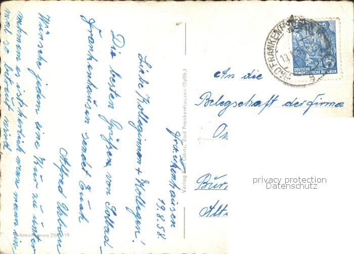 72343651 alte Postkarte Frankenhausen Bad Blick von Hainleite Kyffhaeuser Denkmal Weinberg Schwimmbad Anger postalisch gelaufen Erhaltung siehe scans KatCode: 11110016065003