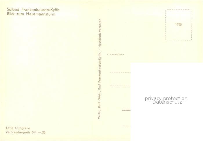 73031280 Frankenhausen Bad Hausmannsturm postalisch nicht gelaufen Erhaltung siehe scans [KathaD81] KatCode: 11110016065003