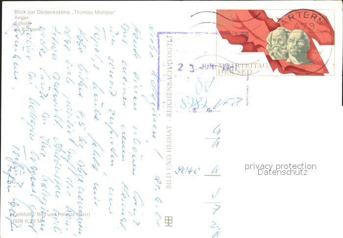 72373593 alte Postkarte Frankenhausen Bad Kyffhaeuser Gedenkstaette Thomas Muentzer Schloss Anger postalisch gelaufen Erhaltung siehe scans KatCode: 11110016065003