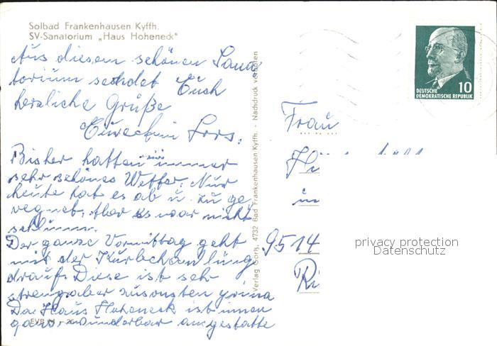 72549333 Frankenhausen Bad Sanatorium Haus Hoheneck postalisch nicht gelaufen Erhaltung siehe scans [AndreD76 kv022box] KatCode: 11110016065003
