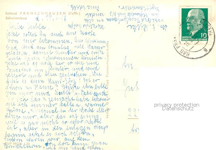 73102586 alte Postkarte Frankenhausen Bad Schwimmbad postalisch gelaufen Erhaltung siehe scans [KathaD81] KatCode: 11110016065003