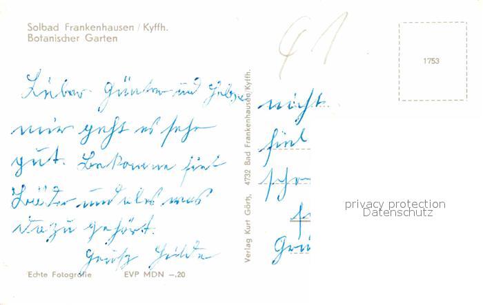 72690780 Frankenhausen Bad Solbad Botanischer Garten postalisch nicht gelaufen Erhaltung siehe scans [LiesaD40] KatCode: 11110016065003