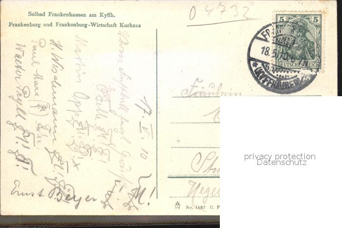 42441506 alte Postkarte Frankenhausen Bad Solbad Die Frankenburg Kurhaus postalisch gelaufen Erhaltung siehe scans KatCode: 11110016065003