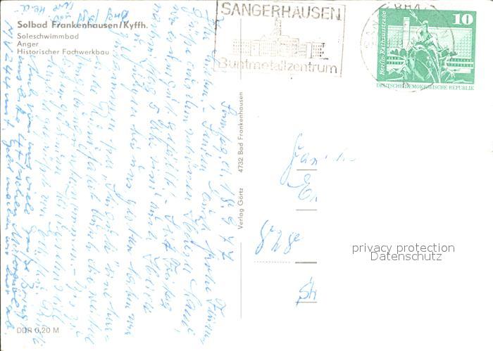 72264436 alte Postkarte Frankenhausen Bad Soleschwimmbad Anger Fachwerkbau postalisch gelaufen Erhaltung siehe scans KatCode: 11110016065003