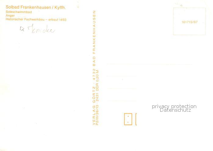 72948727 Frankenhausen Bad Soleschwimmbad Anger Fachwerkbau postalisch nicht gelaufen Erhaltung siehe scans [NatalD47] KatCode: 11110016065003