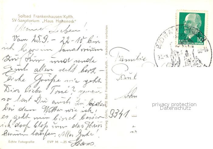 73071700 alte Postkarte Frankenhausen Bad SV Sanatorium Haus Hoheneck postalisch gelaufen Erhaltung siehe scans [WerneD78] KatCode: 11110016065003