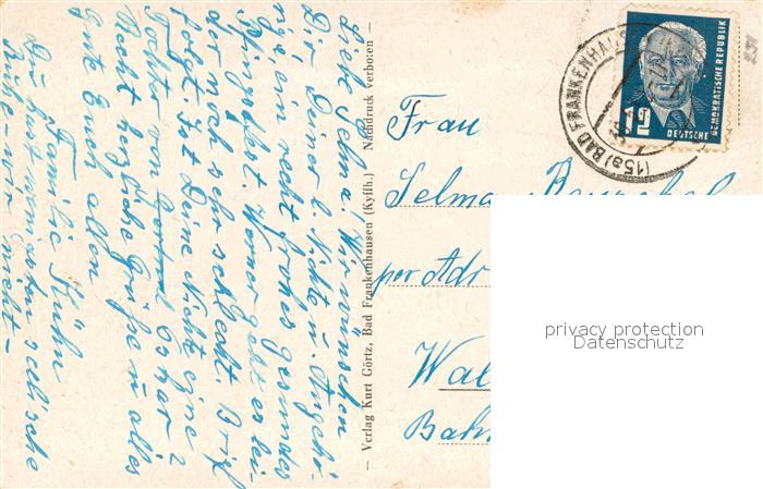 73746287 alte Postkarte Frankenhausen Bad Teilansicht postalisch gelaufen Erhaltung siehe scans [LiesaD40] KatCode: 11110016065003