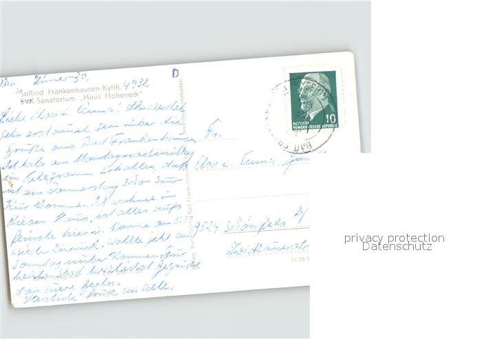 71964160 alte Postkarte Frankenhausen Crimmitschau Sanatorium Hoheneck postalisch gelaufen Erhaltung siehe scans KatCode: 11110014193020