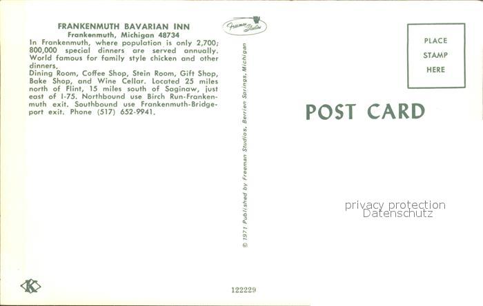 72322893 Frankenmuth Bavarian Inn postalisch nicht gelaufen Erhaltung siehe scans KatCode: 14140240000000