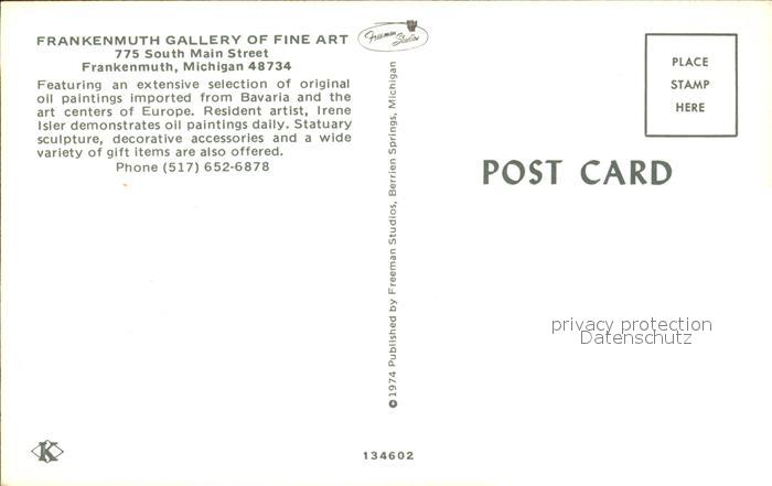 72484868 Frankenmuth Galery of Fine Art postalisch nicht gelaufen Erhaltung siehe scans KatCode: 14140240000000