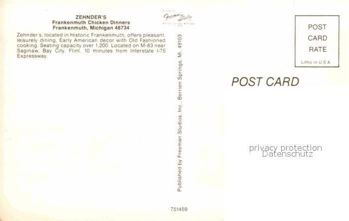 72671395 Frankenmuth Zehnders Frankenmuth Chicken Dinners postalisch nicht gelaufen Erhaltung siehe scans [WerneD78] KatCode: 14140240000000
