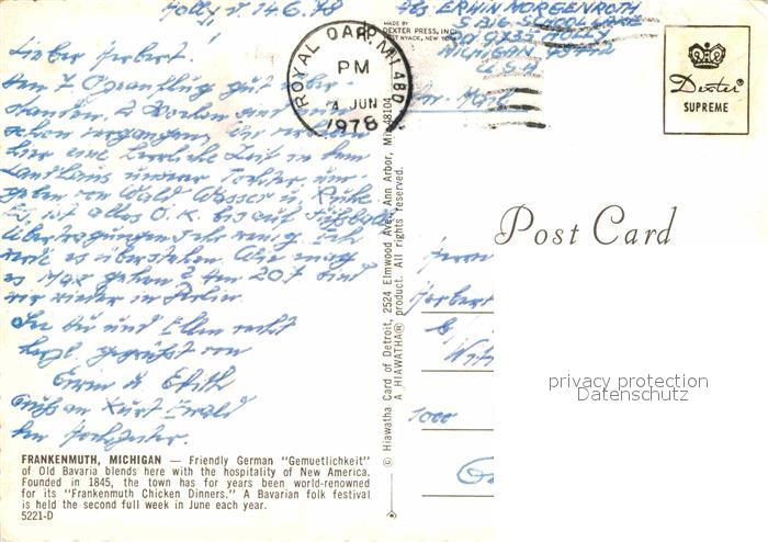 72674253 old postcard Frankenmuth — postalisch gelaufen Erhaltung siehe scans [FriedD77] KatCode: 14140240000000