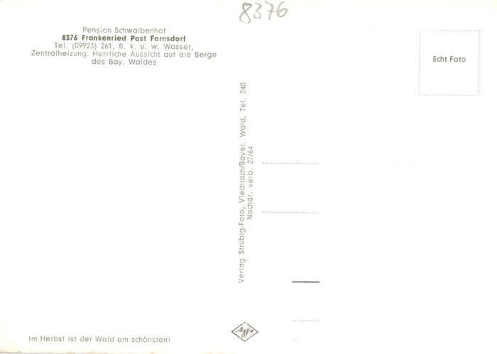 73879756 Frankenried Geiersthal Pension Schwalbenhof Gastraeume Zimmer postalisch nicht gelaufen Erhaltung siehe scans [WerneD78] KatCode: 11110009276122
