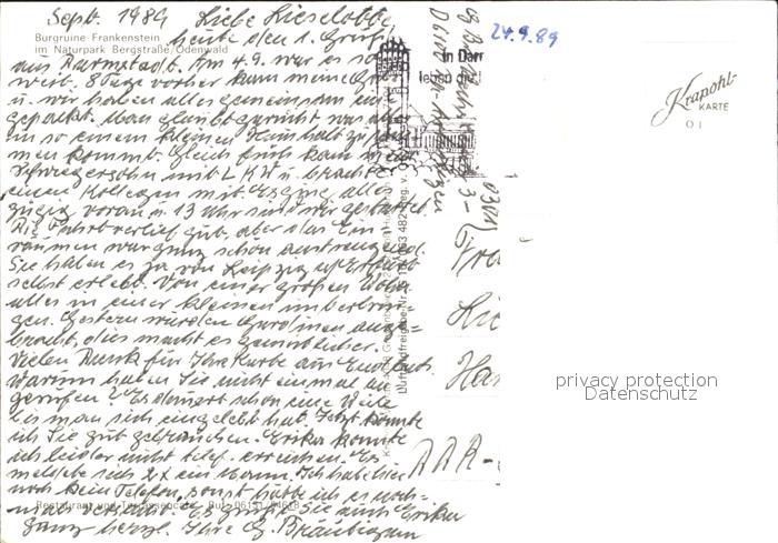 72177812 Frankenstein Bergstrasse Burgruine postalisch nicht gelaufen Erhaltung siehe scans KatCode: 11110006411000