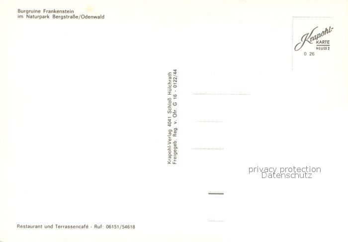 73714917 Frankenstein Bergstrasse Burgruine Frankenstein Fliegeraufnahme postalisch nicht gelaufen Erhaltung siehe scans [WerneD78] KatCode: 11110006411000