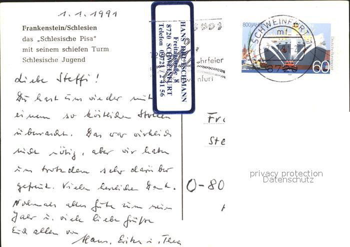 old postcard Frankenstein Niederschlesien Schlesische Pisa postalisch gelaufen Erhaltung siehe scans