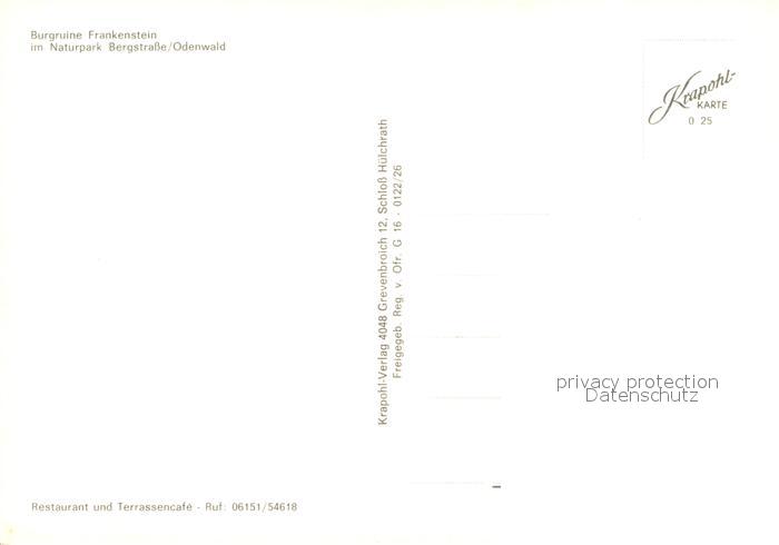 73743723 Frankenstein Pfalz Burgruine Frankenstein im Naturpark Bergstrasse Fliegeraufnahme postalisch nicht gelaufen Erhaltung siehe scans [FriedD77] KatCode: 11110007335010