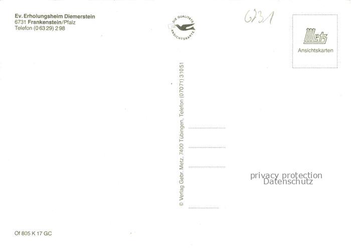 74046749 Frankenstein Pfalz Ev Erholungsheim Diemerstein postalisch nicht gelaufen Erhaltung siehe scans [WerneD78] KatCode: 11110007335010