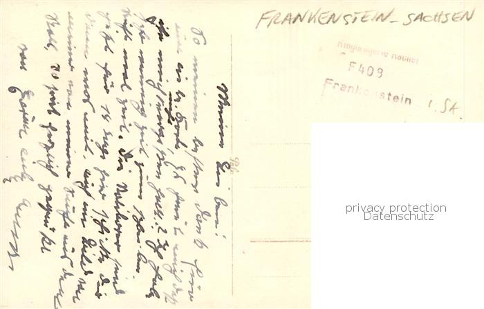 73802181 alte Postkarte Frankenstein Sachsen Ortsmotiv mit Kirche postalisch gelaufen Erhaltung siehe scans [FriedD77] KatCode: 11110014177130