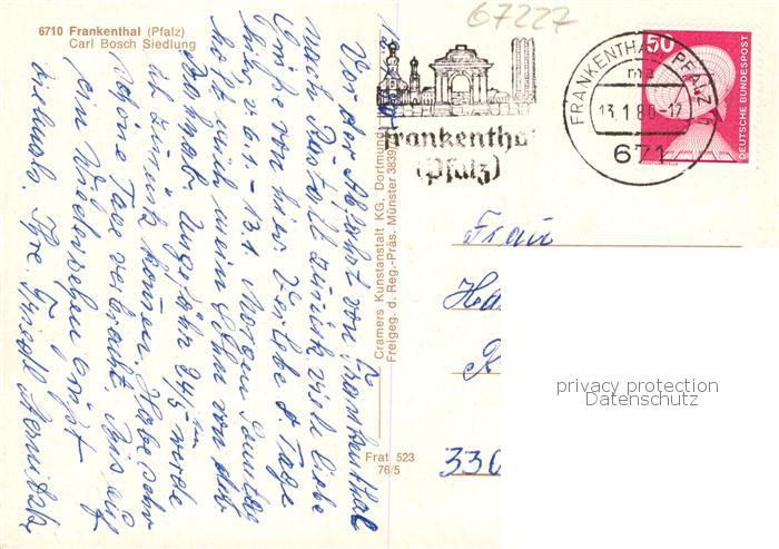 73853706 Frankenthal Pfalz Carl Bosch Siedlung Fliegeraufnahme postalisch gelaufen Erhaltung siehe scans [WerneD78] alte Postkarte Wern Katcode 11110007311000