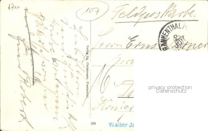 32030192 alte Postkarte Frankenthal Pfalz Frankenstrasse postalisch gelaufen Feldpost Erhaltung siehe scans KatCode: 11110007311000