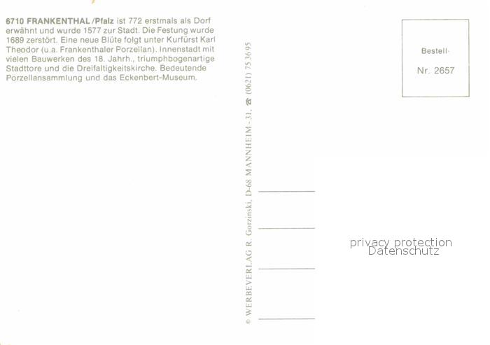 72854659 Frankenthal Pfalz Ortspartien postalisch nicht gelaufen Erhaltung siehe scans [LiesaD40] KatCode: 11110007311000