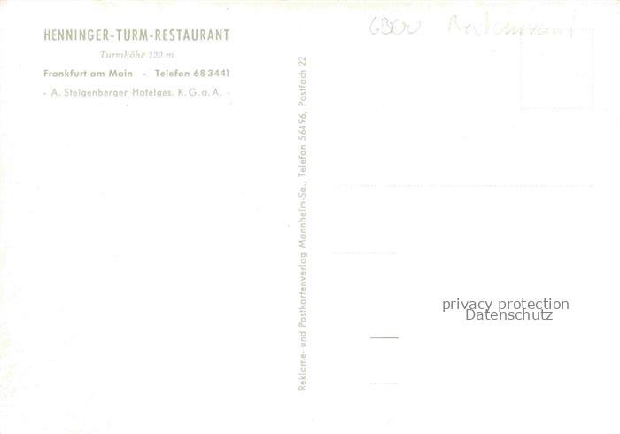 74104237 FRANKFURT AM MAIN Henninger Turm Restaurant postalisch nicht gelaufen Erhaltung siehe scans [WerneD78] Wern Katcode 11110006412000