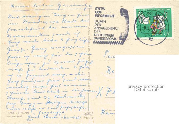 74092023 alte Postkarte FRANKFURT AM MAIN Panorama Nordweststadt postalisch gelaufen Erhaltung siehe scans [FriedD77] KatCode: 11110006412000