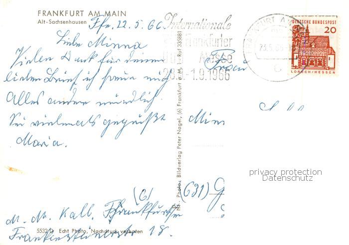 73867609 alte Postkarte Frankfurt Main Alt Sachsenhausen postalisch gelaufen Erhaltung siehe scans [WerneD78] KatCode: 11110006412000
